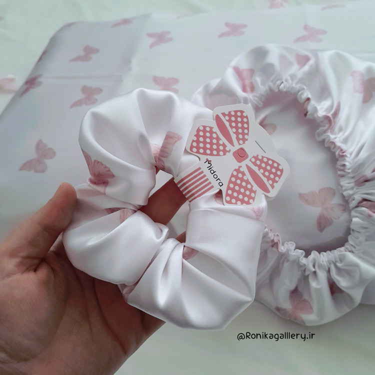 ست ۳ تکه ساتن ال ایکس مراقبت از مو شامل روبالشتی و کلاه خواب و اسکرانچی طرحدار