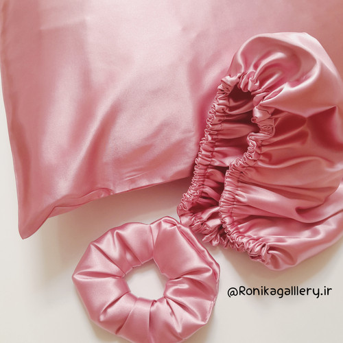 ست ۳ تکه ساتن ال ایکس مراقبت از مو شامل روبالشتی و کلاه خواب و اسکرانچی