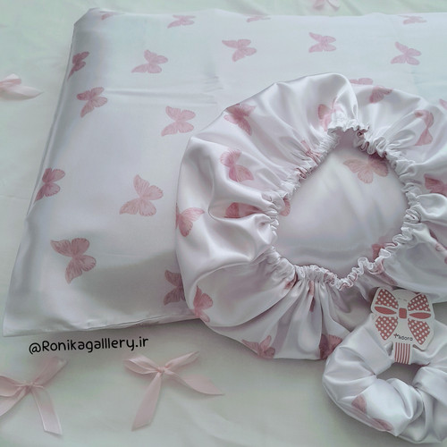ست ۳ تکه ساتن ال ایکس مراقبت از مو شامل روبالشتی و کلاه خواب و اسکرانچی طرحدار